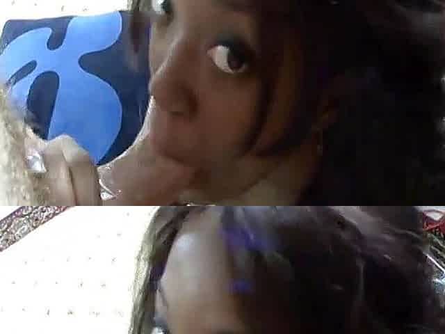 Sexy black chick gets fucked and creamed after sucking off hard white cock