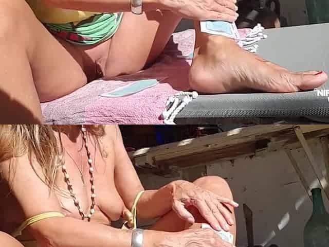 Nippleringlover Horny Milf Waxing Legs Outdoors Huge Nipple Rings In Pierced Nipples Pierced Pussy