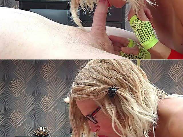 Blonde, durchtrainierte Stute reitet einen dicken Schwanz