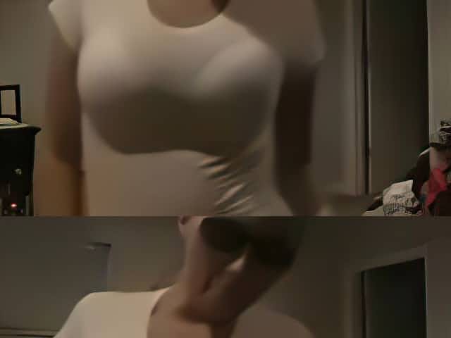 Cute girl with perky tits dances naked in her room