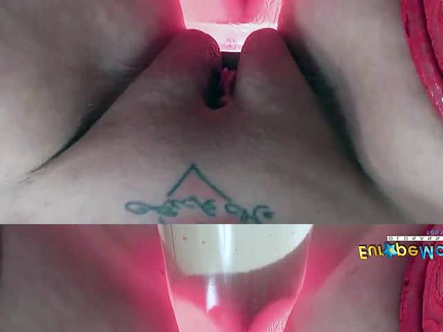 old granny peeing at the bathtub