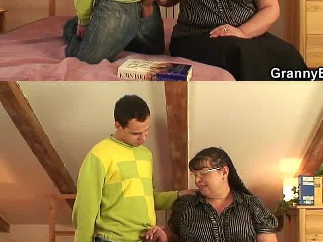 Breasty 70 years old granny tastes his dick