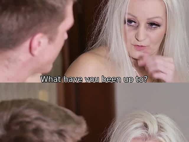 MATURE4K. Older woman flashes charms in front of the dude to entice him