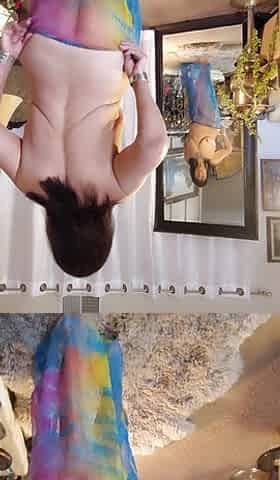 "Granny with hairy dancing naked with a scarf"