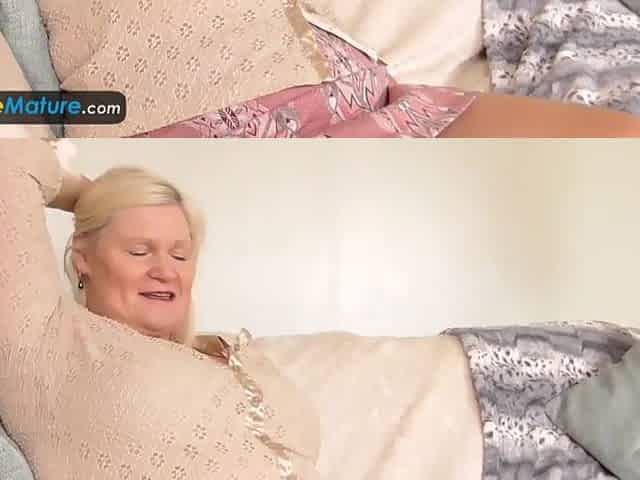 EuropeMaturE Blond Lady is Playing on the Daybed