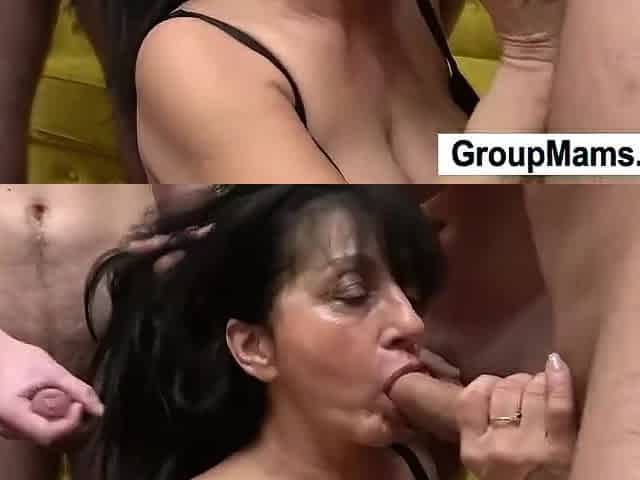 Voluptuous granny with large titties is sucking many weenies in front of the camera, just for pleasure