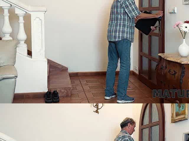 MATURE4K. Old Elle with biggest melons drilled her gardener in doggy and ended up in court