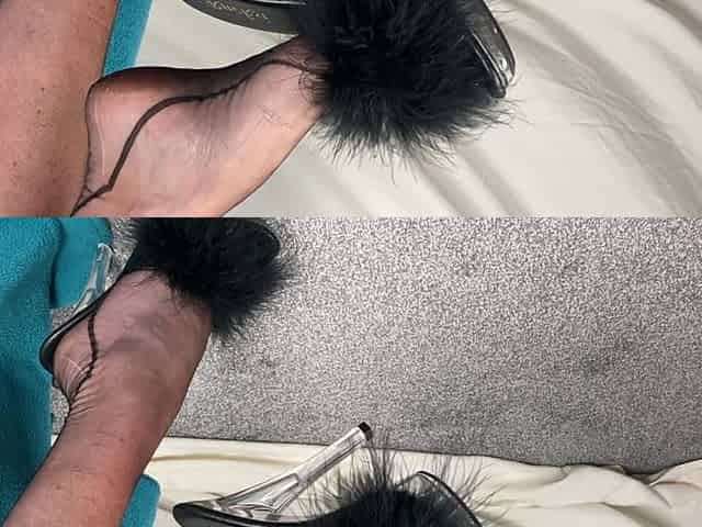 Mrs Mature Feet Giving You All a Very Sexy Shoe Dangle and Toe Wiggle with a Pair of Her Stripper Heels