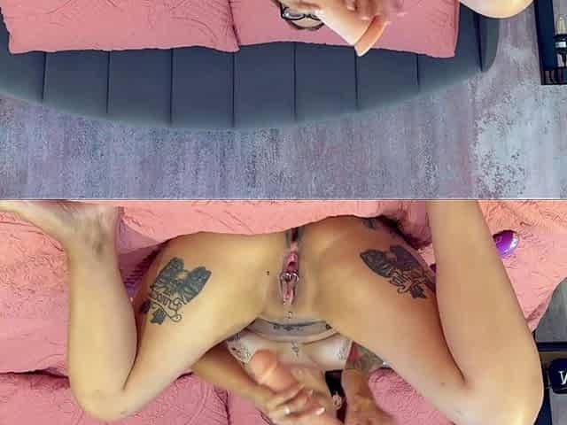 Brunette Wife Fucked with Huge Vibrator While Getting her