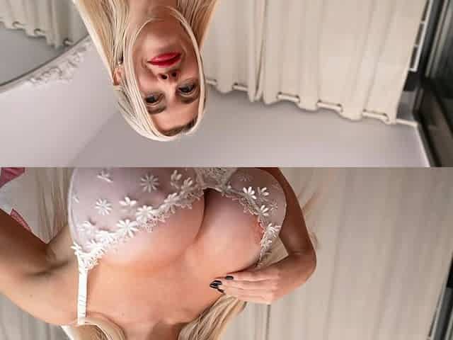 Sexy Blonde Babe With Big Boobs Strips Bra
