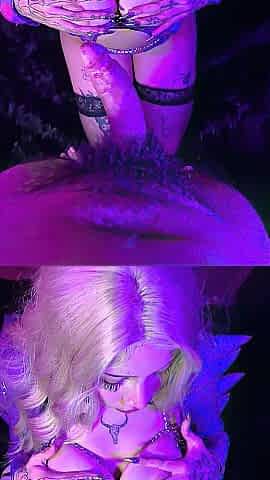 Blondessa filmed a foot fetish porno! That guy cum on her large breasts!
