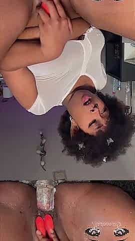 Jugando con mis tetas llenas de crema y mi juguete raunchy ????????