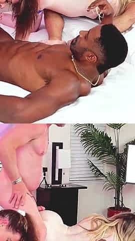 Sexual intimacy threesome with Amy Azurra and Alysha Leigh two sluts with perky breasts want big cock in their pussies