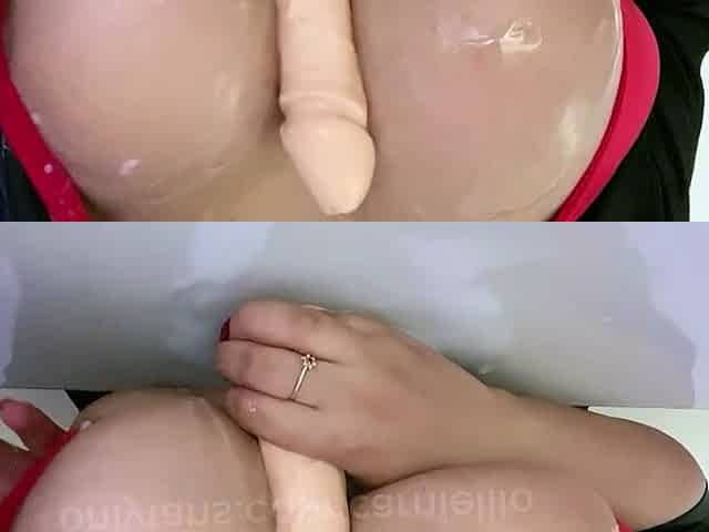 Busty babe oiled babe with big boobs masturbating on cam