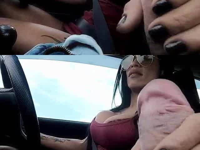 Married woman makes stranger in the car mock