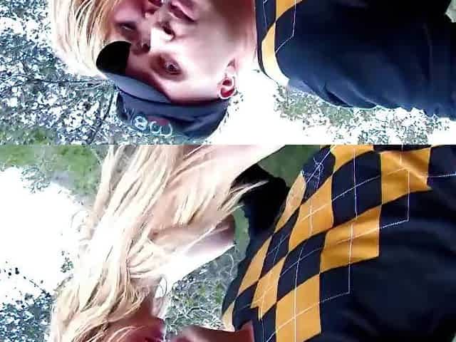 A blond engages in oral pleasure-sex in a vehicle and thereafter has booty-plug outside.