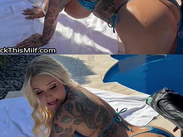 Fine Ass Thic Booty Tatted White Girl - Pool Side CreamPie - Teddy Tarantino & Kali Roses - Lingerie