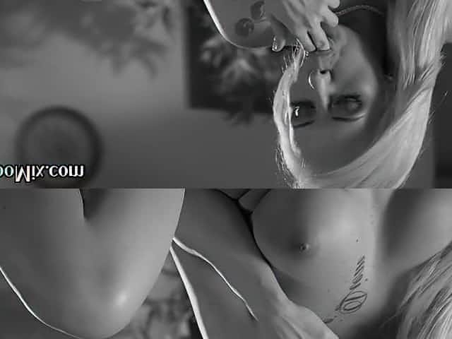 Busty Blonde Babe Stuffs Panties Into Wet Shaved Pussy and