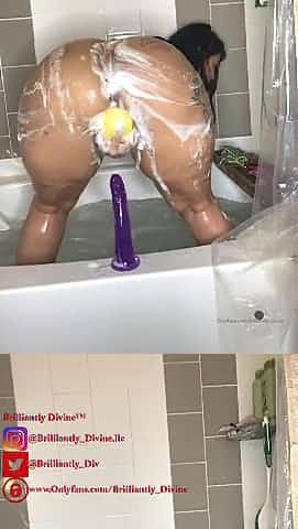 wet tattooed Latina with fat black ass & black tits in bathtub