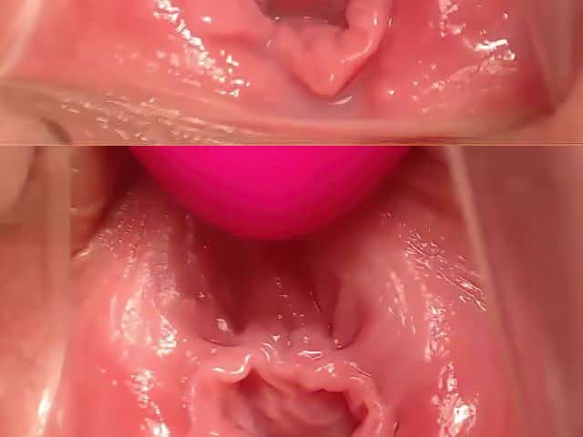 Kinky babe gives a close-up view of a dildo in her pussy