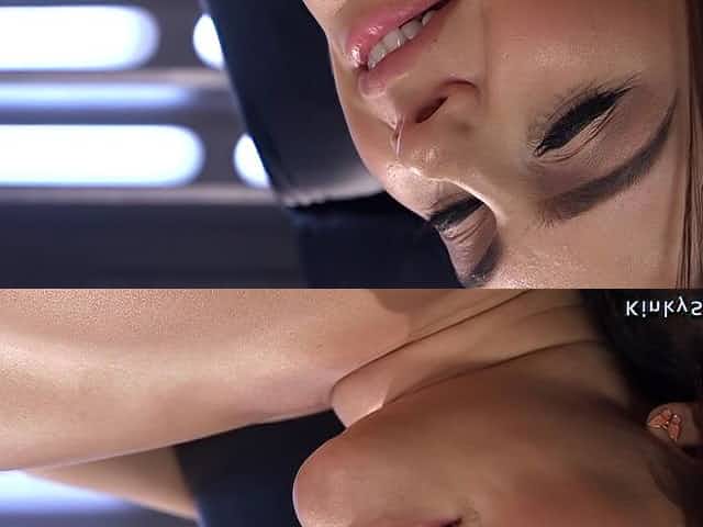 Full-Bosomed babe oils rear and fucks machine