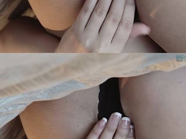 Busty babe Sandra Shine keeps her panties on during masturbation