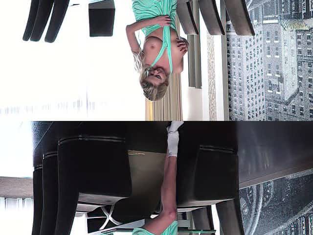 Torrid brunette teen with long legs drinks her warm piss passionately