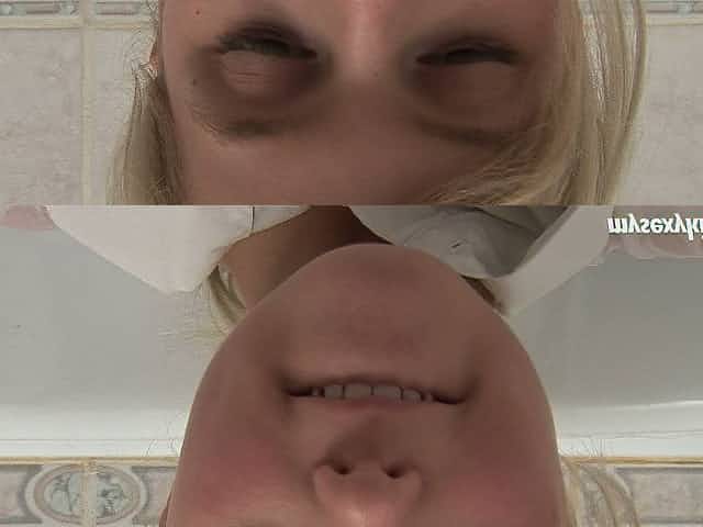 Adorable blond girl Maaike fingers her tight pussy in the bathroom