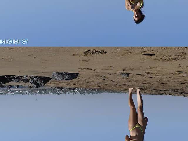 Curvaceous 18 yo Shione with big natural boobs is bathing on a seashore