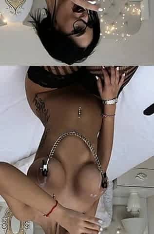 Wet tattooed raven babe Sahron with big boobs masturbates