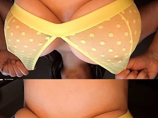 Busty brunette babe tease you with her big boobs