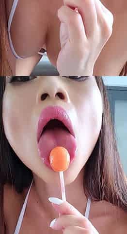 Lucy Li shakes big natural tits while masturbating