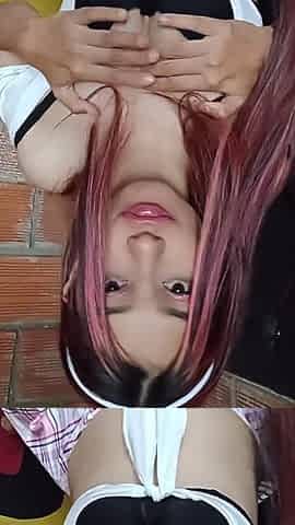 Big-Titted Schoolgirl in Uniform Plays with Herself