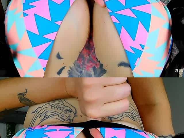 Wet tattooed raven babe Sahron with big boobs masturbates