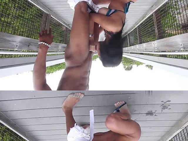 Fit Ebony Babe Strips and Stretches in Public