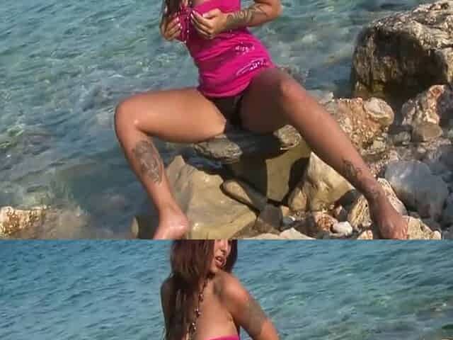 904 Brunette Buxom Domino Striptease in Beach