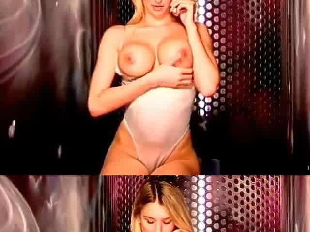 Heavy-breasted nude blonde cranked the volume up