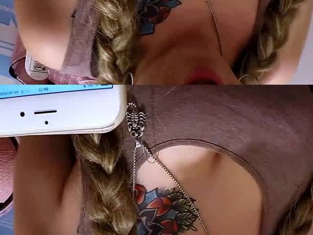 Blonde Tattooed Babe Orgasms Passionately on Webcam