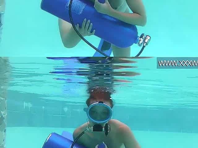Hungarian beauty fucks a dildo underwater