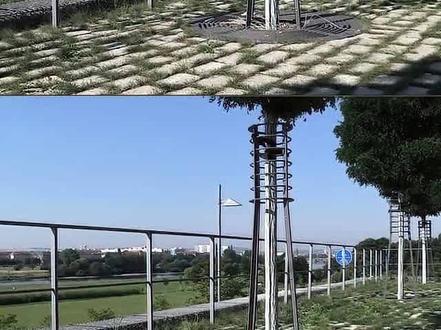 Young euro babe flashing tits outdoors in public space -
