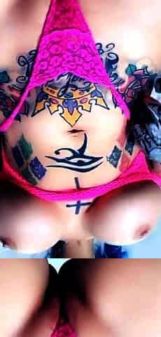 Wet tattooed raven babe Sahron with big boobs masturbates