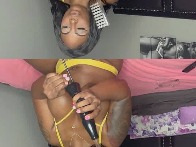 Solo Ebony Busty Babe Sensual Violet Wand on Big Boobs