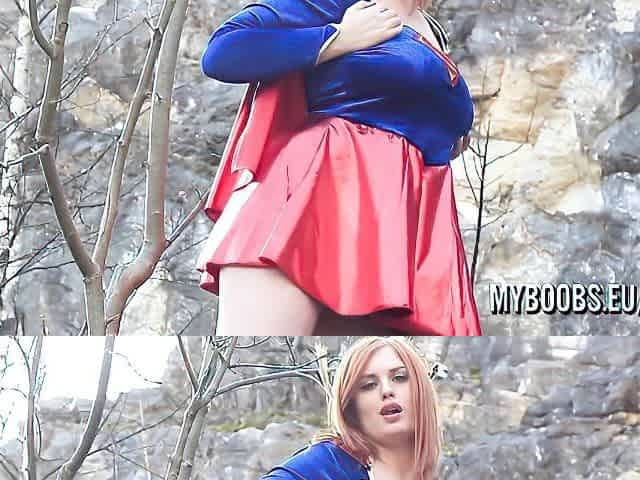 Busty babe playing with her big boobs