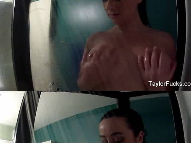 Brunette hair female-dominator Alison Tyler plays with herself in the baths