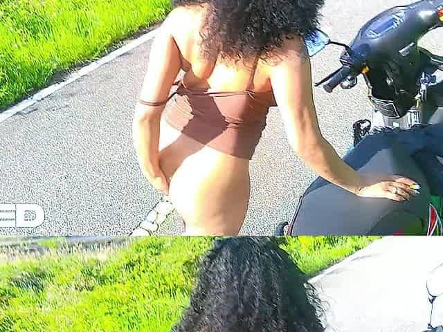 Ash-blonde stepsister Lissabrownx lets me rock her outdoors on the motorcycle until we almost get caught