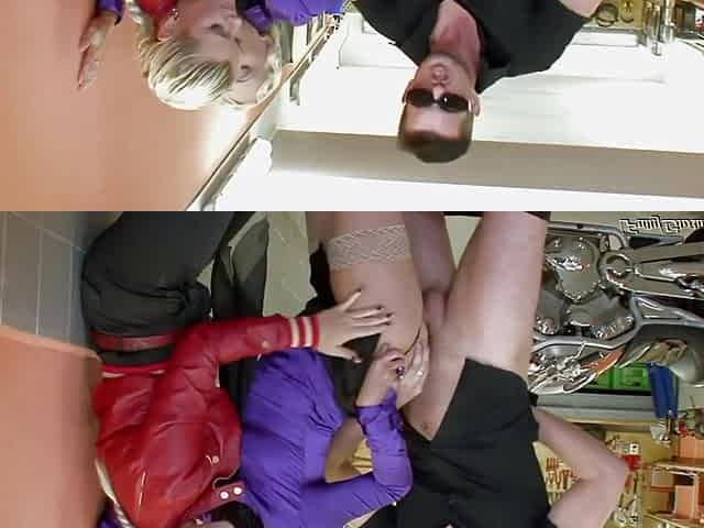 Biker fucks a hottie in fishnet stockings