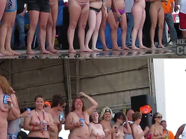 fresh real women competing in biker rally wet tshirt contest