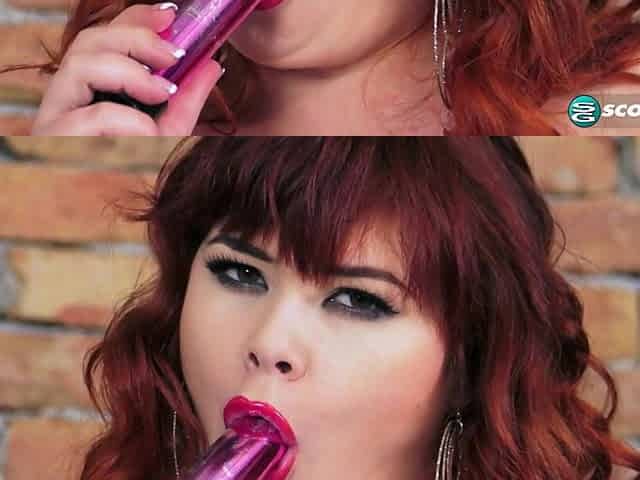 Ebony Girl In Biker Gloves Sucks A Dildo Passionately For You