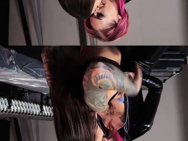 Horney biker chicks Evelyn and Silvia play with their shaved pussies for a roaring orgasm