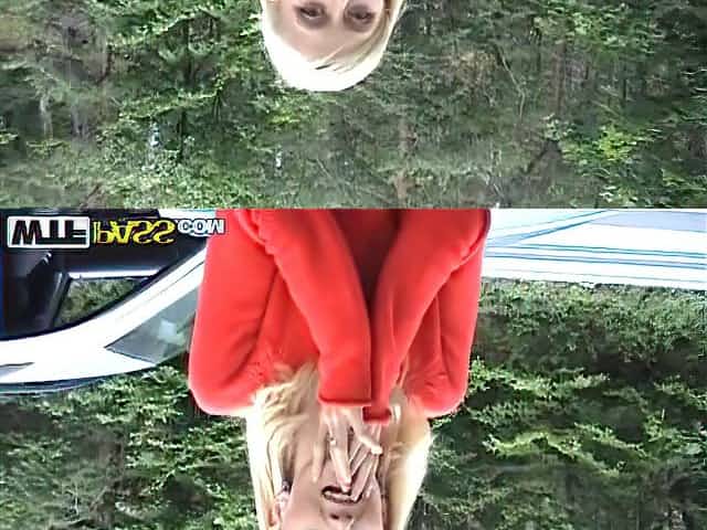 Sweet blond girlie of brutal biker blows his massive cock furiously